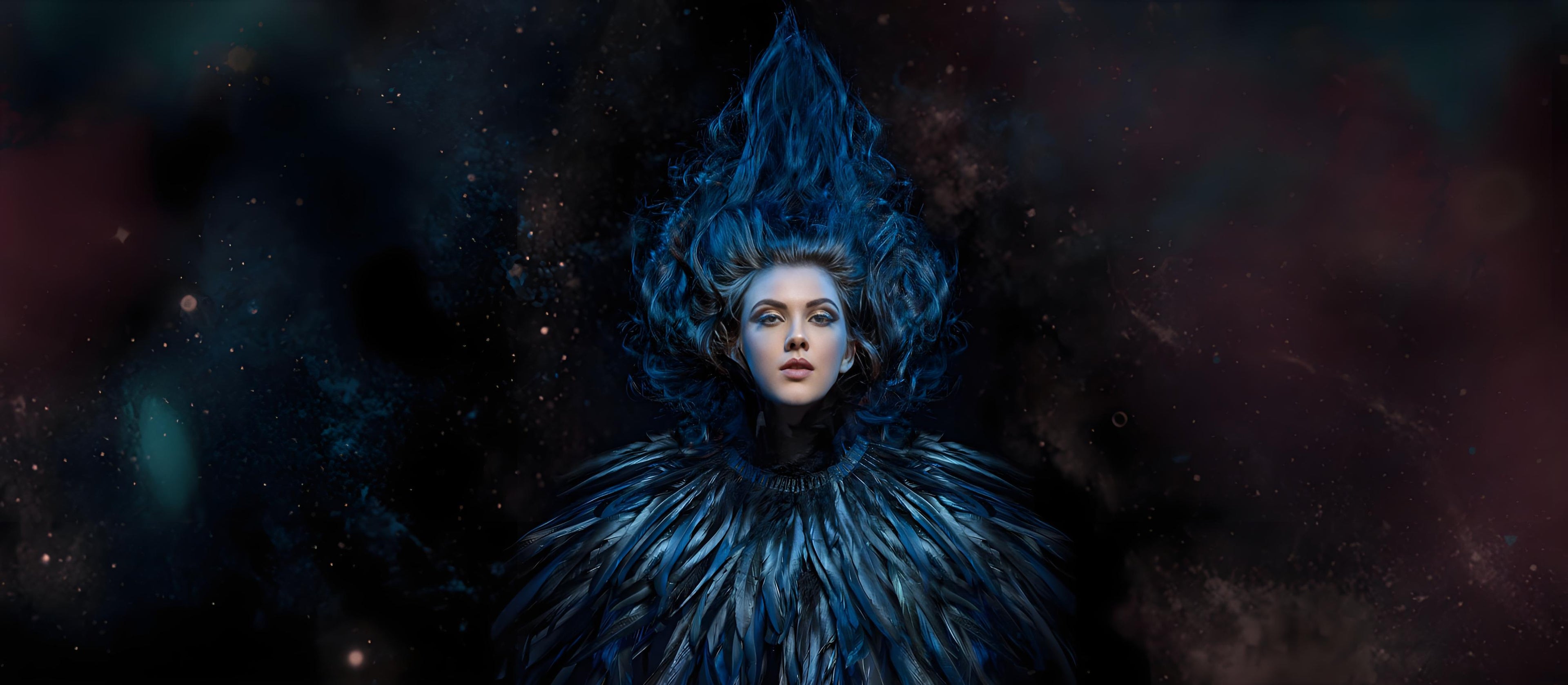 HOMELEX Evil Queen Horns with Feather Cape Shawl Set – Black Halloween Costume for Women