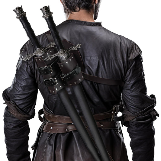Medieval Leather Back Sword Shoulder Frog - Adjustable Sheath Holster Renaissance Warrior Costume Accessory