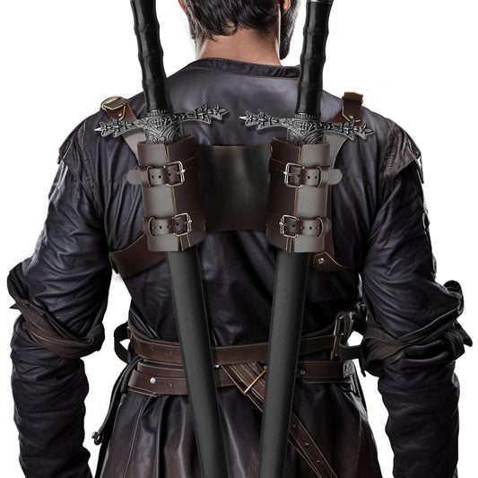 HOMELEX Medieval Leather Double Word Frog Renaissance Warrior Costume Holster Accessory