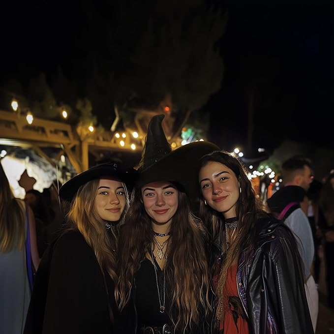 The witch hat is made of polyester fiber, lightweight and durable, soft and comfortable to wear, can be dry cleaned and reused multiple times, bringing you an unforgettable clothing experience.